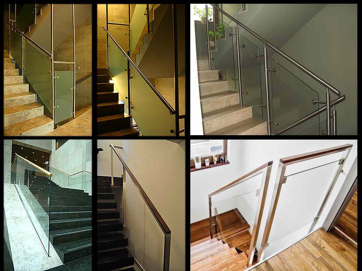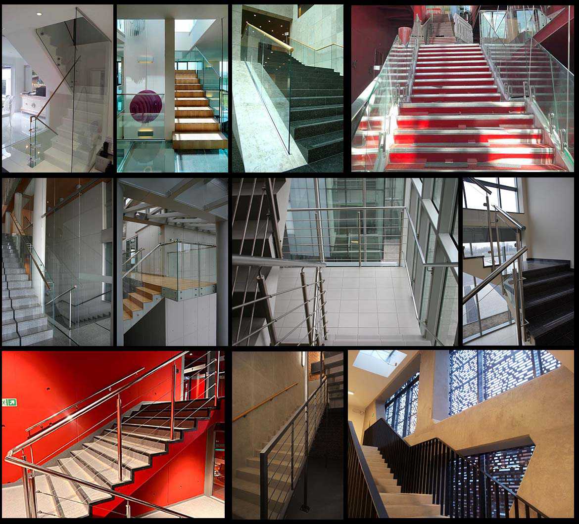 Lösningar visade är av rostfritt eller galvaniserat stål och laminerade, härdat, självbärande glas.