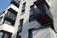 Utomhustrappor och balkonger för familjehem i Grorud, Oslo, Norge, 2016 |